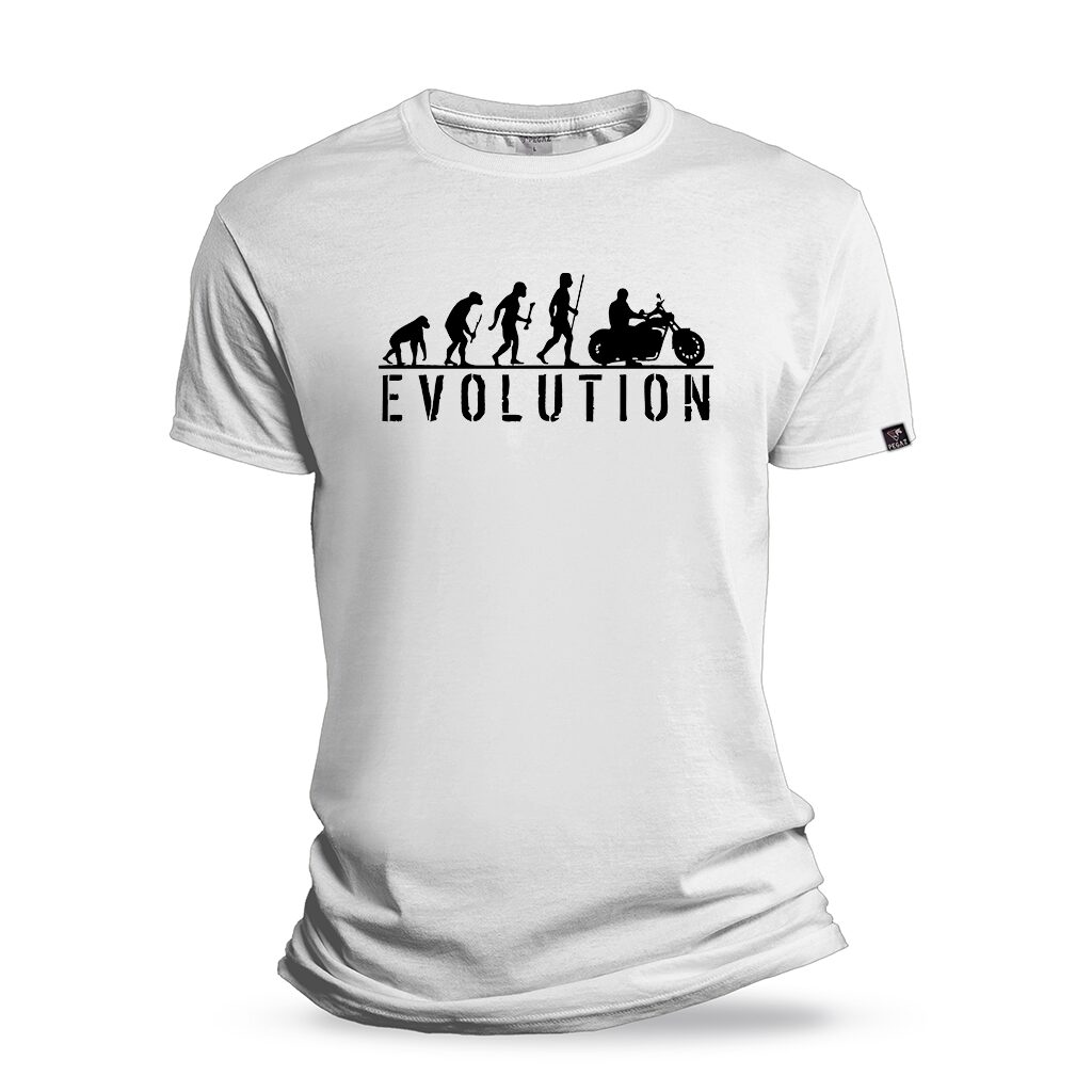Moto majica Moto Evolution — prikazuje evoluciju koja vodi do pravog bajkera. Moderan print, udobna i kvalitetna – idealna za sve ljubitelje motora i slobode na dva točka.